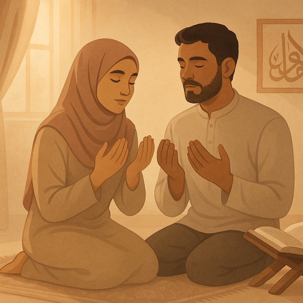 Have you ever held your wife’s hand after salah and made dua together? It can be very powerful. You might say: